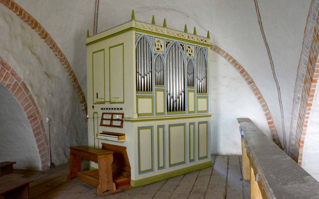 üblich, im Ersten Weltkrieg eingeschmolzen, um Metall für die Rüstungsindustrie zu gewinnen. Die Pfeifen sind somit noch original. 1967 wurde die Orgel seitlich versetzt, um den Blick auf die sich dahinter befindlichen Wandfresken freizulegen. 2008 erfolgte eine Generalüberholung durch den Orgelbauer Jörg Stegmüller aus Berlin.