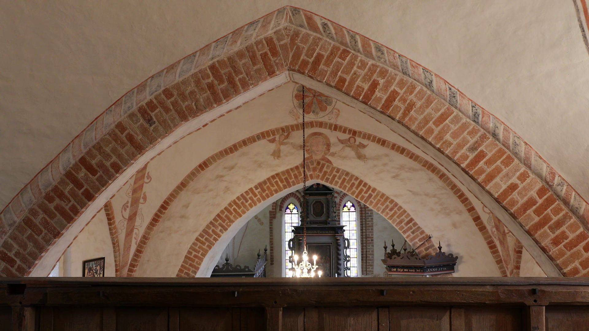 The chancel (the area around the altar) and the nave were finished first. Afterwards the interior walls were decorated with frescoes. Building the tower followed in a second phase, which accompanied a second painting of the church.